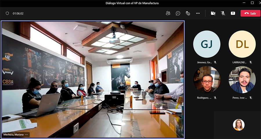 Con la finalidad de mantener el diálogo directo entre trabajadores y las Vicepresidencias de RH y Manufactura durante la crisis sanitaria, así como también para mantener las medidas de bioseguridad, se realizaron reuniones virtuales mediante la plataforma Teams, en donde se explica el estado de la y se abre un espacio para consultas o dudas para los colaboradores de administración y de planta.