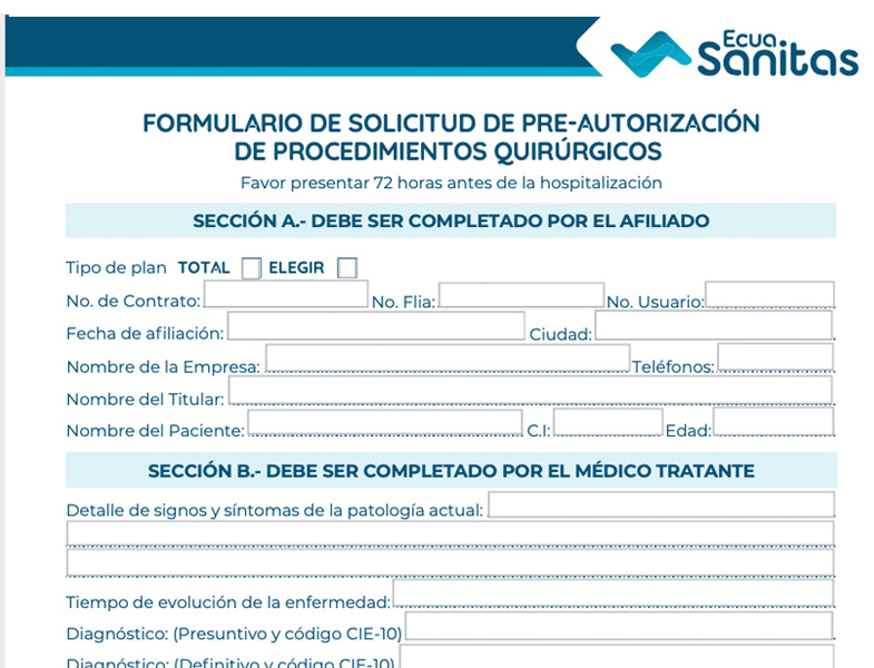 Solicitud de pre-autorización de procedimientos quirúrgigos